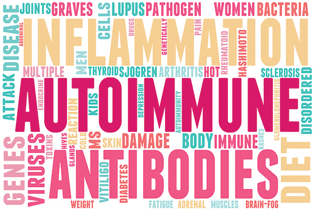 Les maladies auto-immunes sont la 3ème cause de mortalité dans le monde après les maladies cardiovasculaires et cancers. Si courantes et pourtant si mal connues. On parle de maladie auto-immune quand notre propre corps s’attaque à nos propres cellules et tissus. Les maladies auto-immunes sont très difficiles à diagnostiquer par les médecins, les symptômes étant vastes et parfois semblables à d’autres maladies plus communes. C’est une maladie qui se développe doucement pendant des années et en général il faut environ 5 ans (!) avant qu’on puisse la diagnostiquer, du fait des normes des laboratoires qui ne sont pas adaptées et les médecins pas assez formés à la détection des premiers symptômes. Les statistiques montrent qu’il faut consulter 6 à 10 spécialistes avant qu’elle ne soit diagnostiquée. Rien d’étonnant, vu qu’il n’existe pas de spécialisation médicale concernant le système immunitaire, celui-là même qui est touché. Quand la maladie touche la thyroïde (Hashimoto, Graves Basedow) on dirige le patient vers un endocrinologue, en cas de maladie de Crohn ou de maladie cœliaque vers un gastro-entérologue; la polyarthrite rhumatoïde est soignée par un rhumatologue et la sclérose en plaque par un neurologue. Mais qui va soigner notre système immunitaire complètement perturbé et qui s’ attaque alors à notre propre corps? Les symptômes au niveau des organes et des tissus sont juste un signe de dysfonctionnement de notre réponse immunitaire et il y aurait très peu d’amélioration (voire pas du tout) en ne soignant que la thyroïde, la peau, les articulations ou les autres tissus sans penser à renforcer et rééquilibrer nos défenses naturelles, qui sont la base de tout.