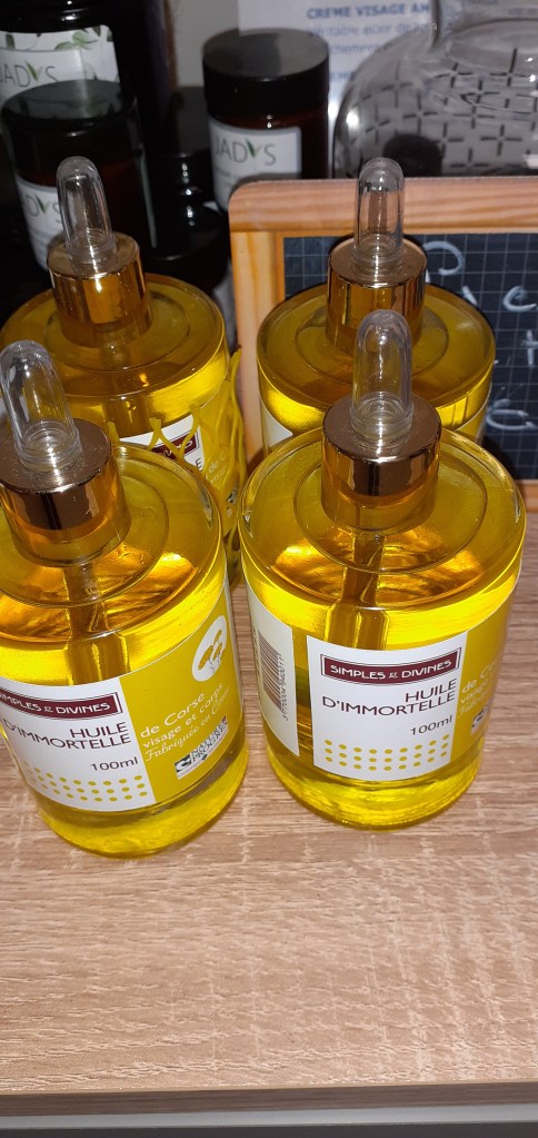 -Huile essentielle d’Hélichryse italienne (ou Immortelle) : tonifiante, décongestionnante
