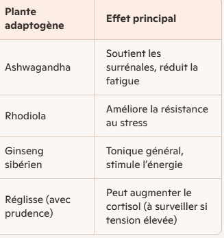 👉Plantes adaptogènes : ashwagandha, rhodiola, basilic sacré