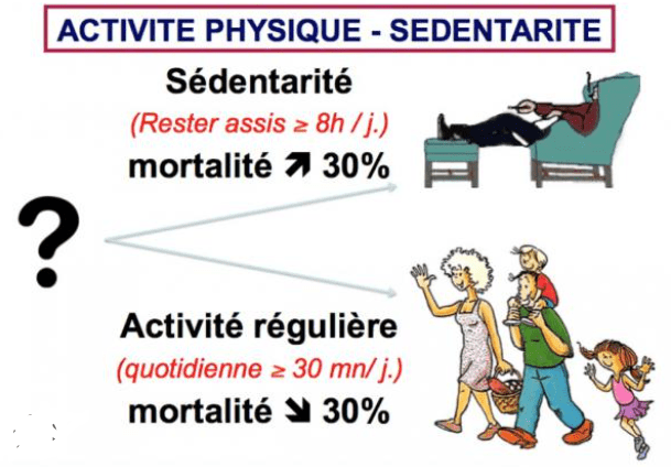Elle est différente de l’inactivité physique : on peut faire du sport et être très sédentaire (ex. : footballeur pro qui passe 11h assis devant un écran).